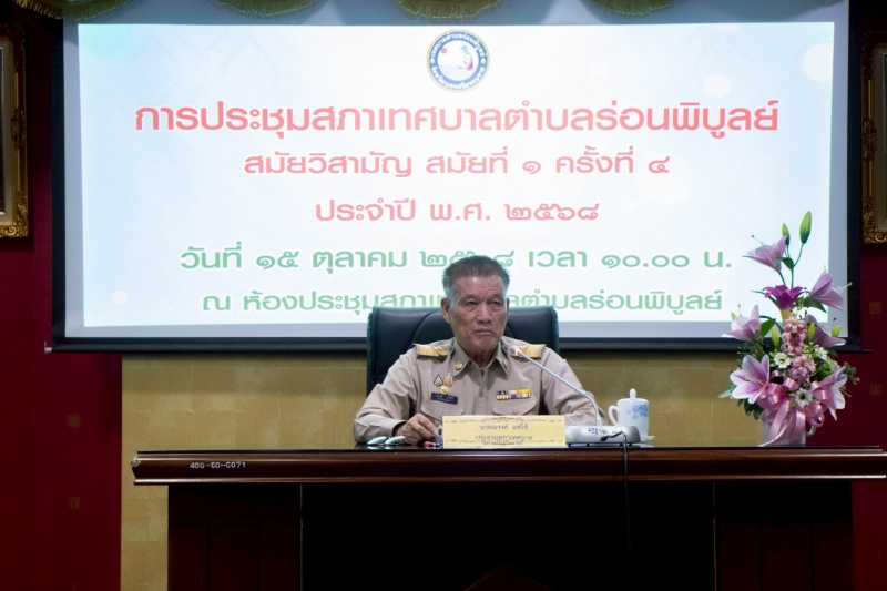 วันที่ 15 ตุลาคม 2568 เวลา 13.30 น. นายสัญชัย แซ่ลิ่ม นายกเทศมนตรีตำบลร่อนพิบูลย์ พร้อมด้วย คณะผู้บริหารเทศบาลตำบลร่อนพิบูลย์  ประธานสภาเทศบาลตำบลร่อนพิบูลย์  สมาชิกเทศบาลตำบลร่อนพิบูลย์  ปลัดเทศบาลตำบลร่อนพิบูลย์  รองปลัดเทศบาลตำบลร่อนพิบูลย์ หัวหน้าสำนักฯ/ผอ.กองฯ  หัวหน้าส่วนราชการ ข้าราชการ พนักงานเทศบาลตำบลร่อนพิบูลย์ ลูกจ้าง/พนักงานจ้าง ร่วมประชุมสภาเทศบาลตำบลร่อนพิบูลย์ สมัยวิสามัญ สมัยที่ 1 ครั้งที่ 4 ประจำปี พ.ศ. 2568  ณ ห้องประชุมสภาเทศบาลตำบลร่อนพิบูลย์