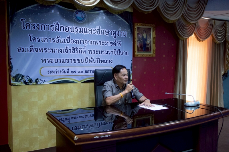 นายสัญชัย แซ่ลิ่ม นายกเทศมนตรีตำบลร่อนพิบูลย์ มอบหมาย นายสุทธิรักษ์ มั่นคง รองนายกเทศมนตรีตำบลร่อนพิบูลย์ พบปะ ให้โอวาท ผู้เข้าร่วมโครงการอบรมและศึกษาดูงานโครงการ อันเนื่องมาจากพระราชดำริ สมเด็จพระนา