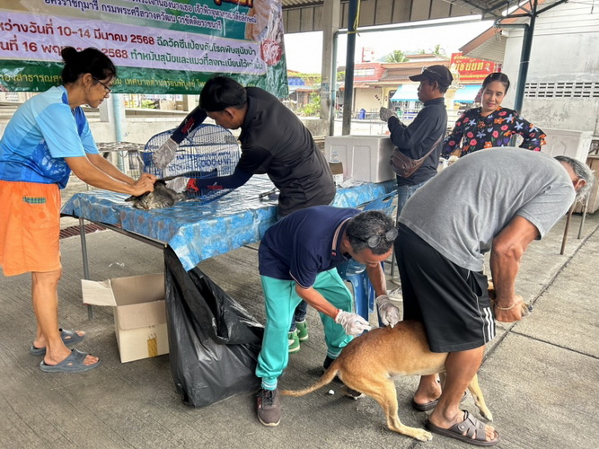 กองสาธารณสุขฯ ลงพื้นที่ฉีดวัคซีนป้องกันและควบคุมโรคพิษสุนัขบ้า ชมชนตลาดใหม่